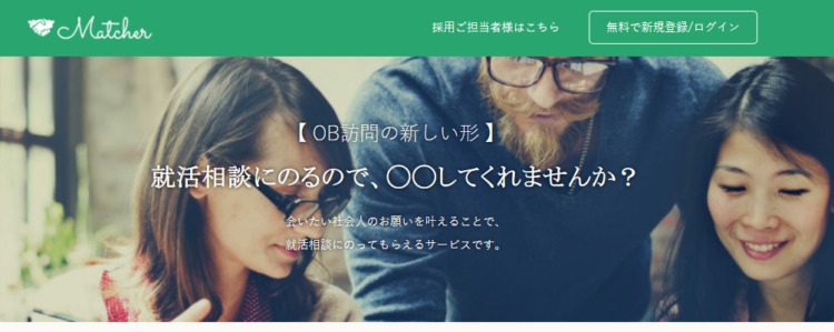 ビズリーチ・キャンパスが大学ごとの仕組みになっているのに対して、Matcherは誰でも自由に検索して会いに行けるオープンなサービスです。